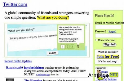 Google.com - 1996 թվական YouTube.com - 2005 թվական Facebook.com - 2004 թվական Wikipedia.org - 2001 թվական Blogger.com - 1999 թվական Twitter.com - 2006 թվական Yahoo.com - 1994 թվական Չնայած սխալ է օդնոկլասիկի կայքը դասել այս կայքերի կողքին, բայց հաշվի առնելով Հայաստանում դրա դիրքերը, ներկայացնեմ նաև այդ կայքի սկզբնական դիզայնը: Odnoklassniki.ru - 2006 թվական | |